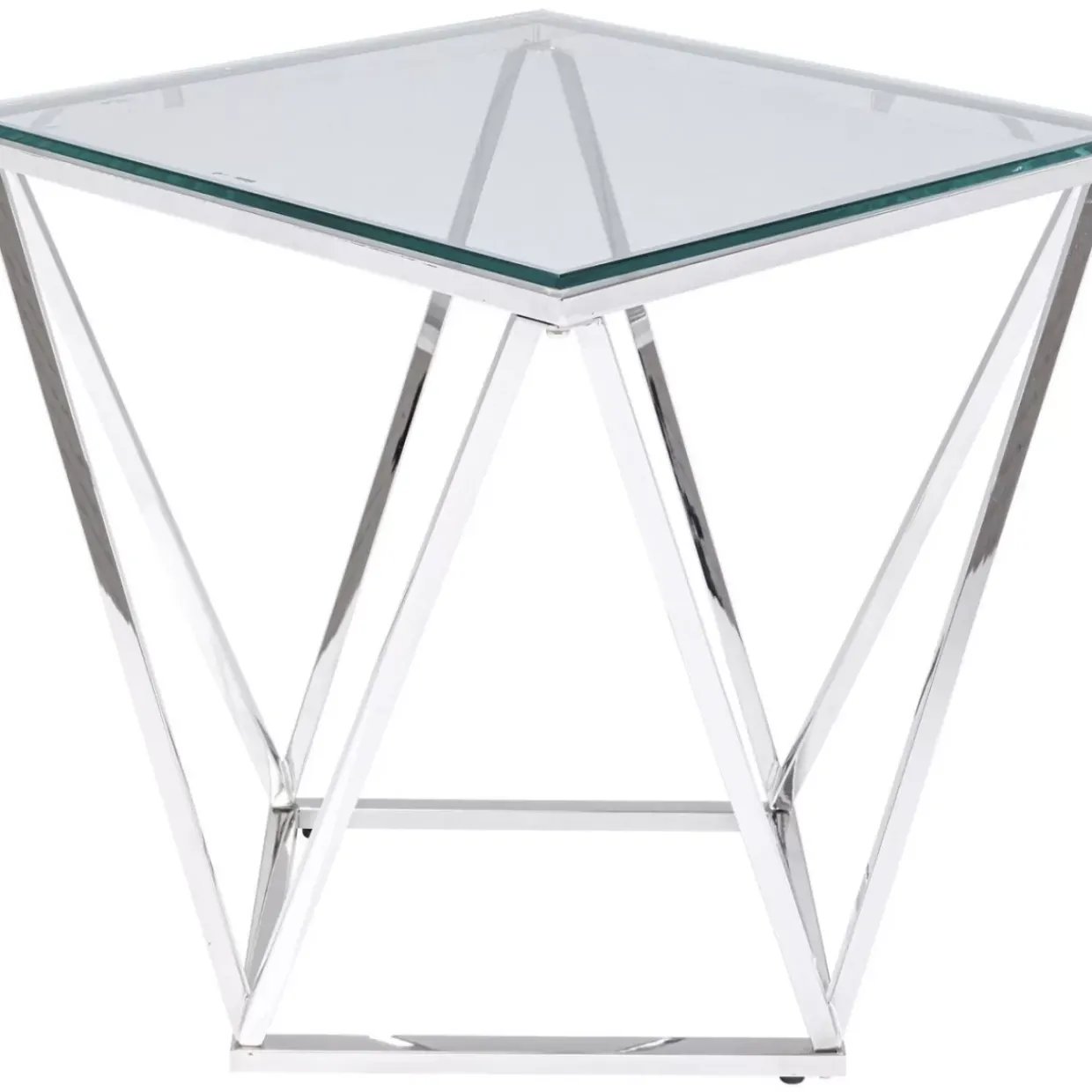 - Quadratischer Glastisch Mit Geometrischem Gestell Aus Poliertem Edelstahl Fur Fans Des Puren Looks