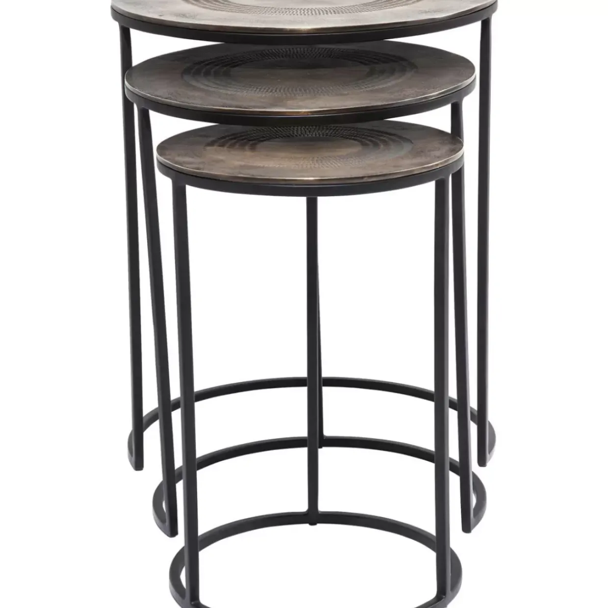 - Handwerkliche Kunststucke: 3Er Set An Runden Beistelltischen Aus Metall Mit Grafisch Verzierten Tischplatten