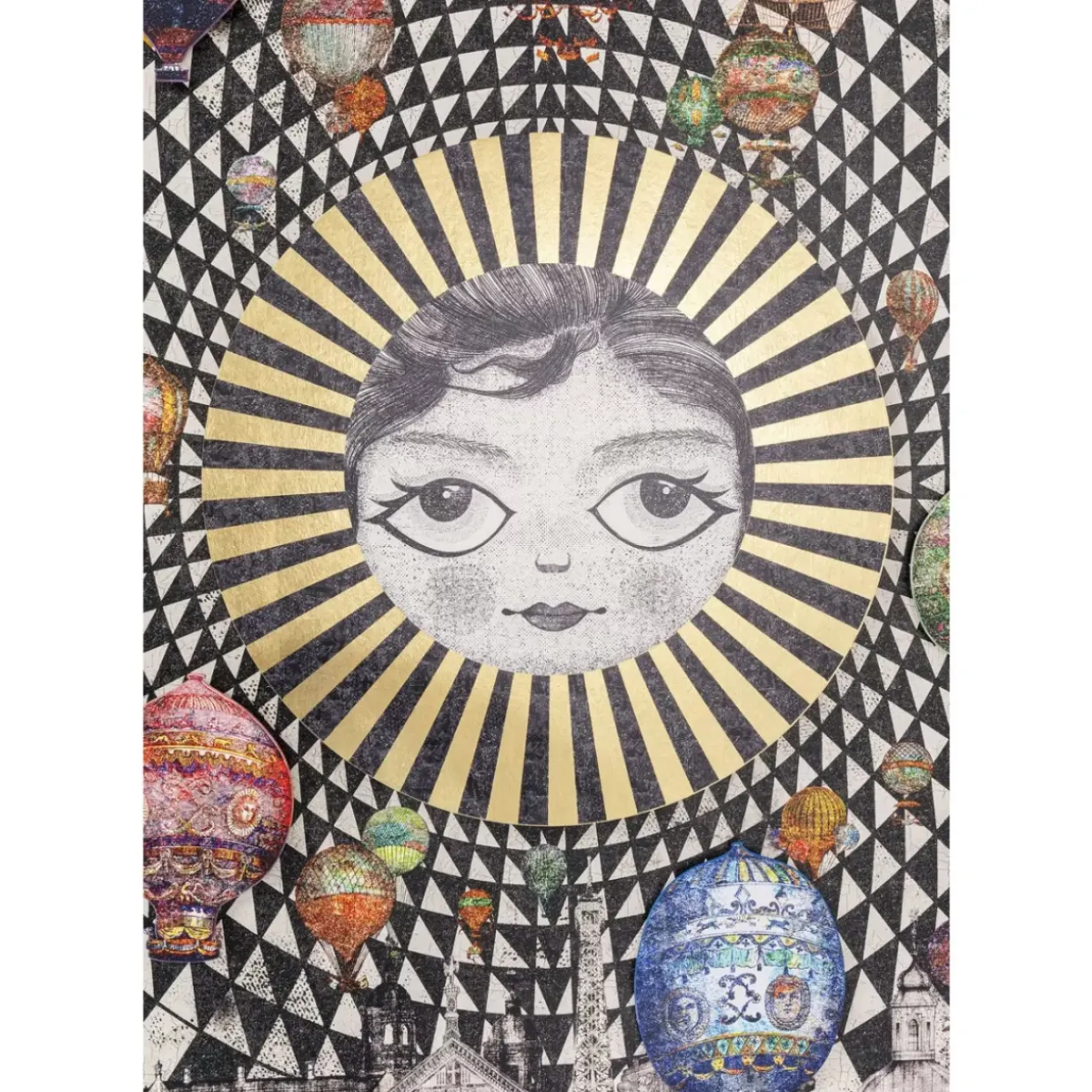 - Elemente Wie Die Heisluftballons Und Das Gesicht Schweben Uber Den Dachern Von Paris Und Sind Als Optische Leckerbissen Auf Den Untergrund Montiert