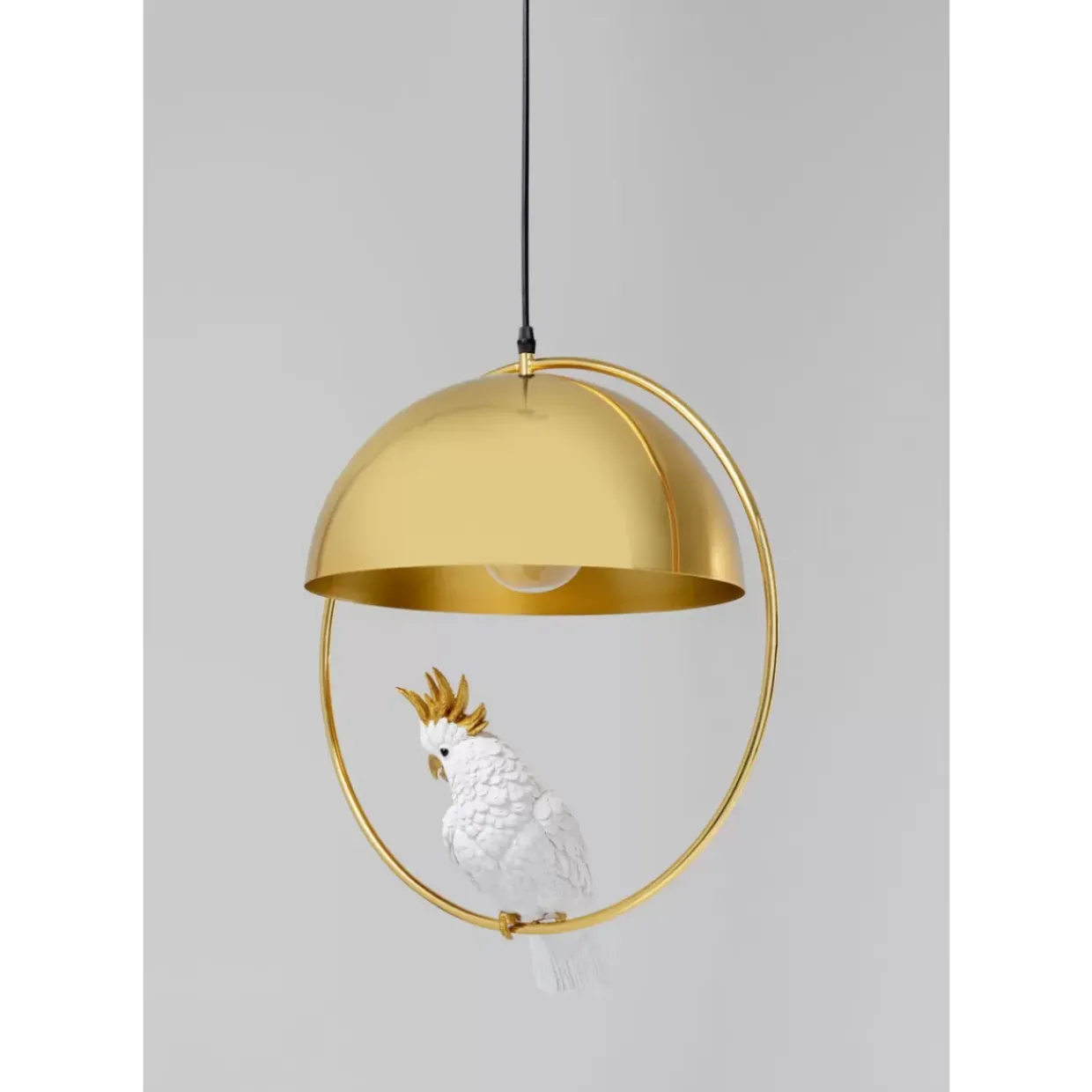 - Diese Hangeleuchte Hat Einen Vogel! Unter Dem Runden Schirm In Gold Schaukelt Ein Hubscher Kakadu