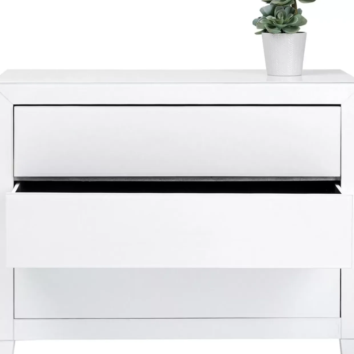 - Kommode Aus Der Kollektion Luxury In Weis Gefarbtem,Verspiegeltem Glas,Drei Schubladen Mit Push-To-Open-Funktion – Die Tagliche Ration Luxus!