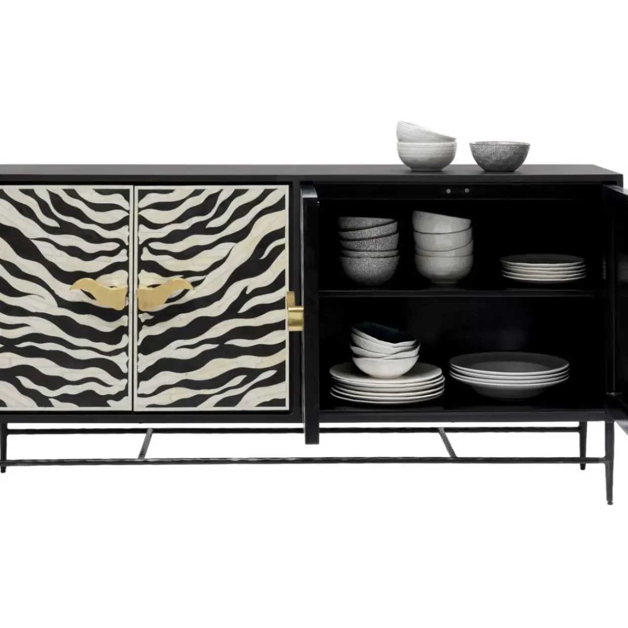 - Hingucker: Mit Dem Zebra Look Und Griffen In Gold-Diese Anrichte Ist Im Wohnzimmer Ein Statement Des Besonderen Geschmacks